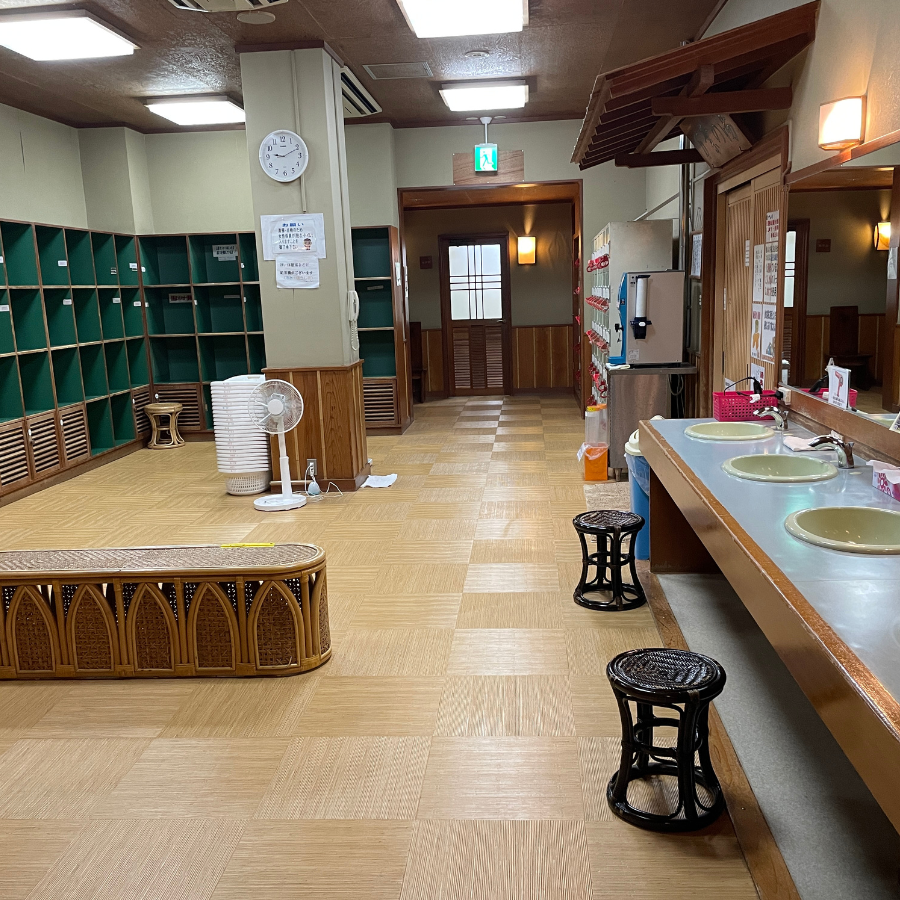 された脱衣所は、来館者を心地よくお迎えします。